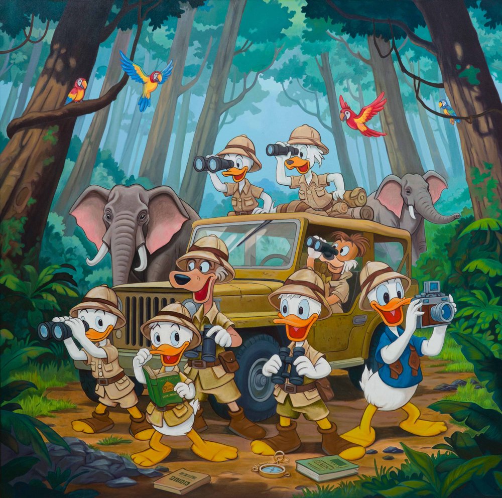 A focused presentation of works by Suryakant Lokhande foregrounds a practice shaped by popular visual culture and narrative imagery. Drawing upon familiar animated figures, the artist creates imaginative compositions that engage with memory, fantasy, and contemporary visual experience. Through vibrant colour and carefully constructed scenes, the works explore storytelling as a form of visual play, reworking shared cultural references into expressive and engaging images.